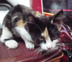 Девочка, 3 месяца. Здорова, профилактически обработана от всего. Трехцветная ласкушка, ненавязчива, но чувствует настроение человека, начнешь с ней играть -с удовольствием, возьмешь на руки - сидит, мурчит, не трогаешь - занимается потихоньку своими делами, не орет и не пристает. В общем, умный симпатичный ребенок. Роскошные усы и кисточки на ушах. В лоток - с первого раза, не дерет, не орет, если не запирать в ограниченном пространстве.