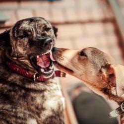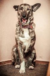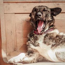 Тигра, кстати, охранница. Из всей банды единственная попыталась изгнать с территории моего Диму. А что? Зашел какой-то мужик двухметровых габаритов, шарится по территории, ни у кого разрешения не спросил. Но Тигру не проведешь, пока другие собаки выпрашивали у волонтеров вкусняшки, она устроила ему допрос с пристрастием. Еле отбили. :D